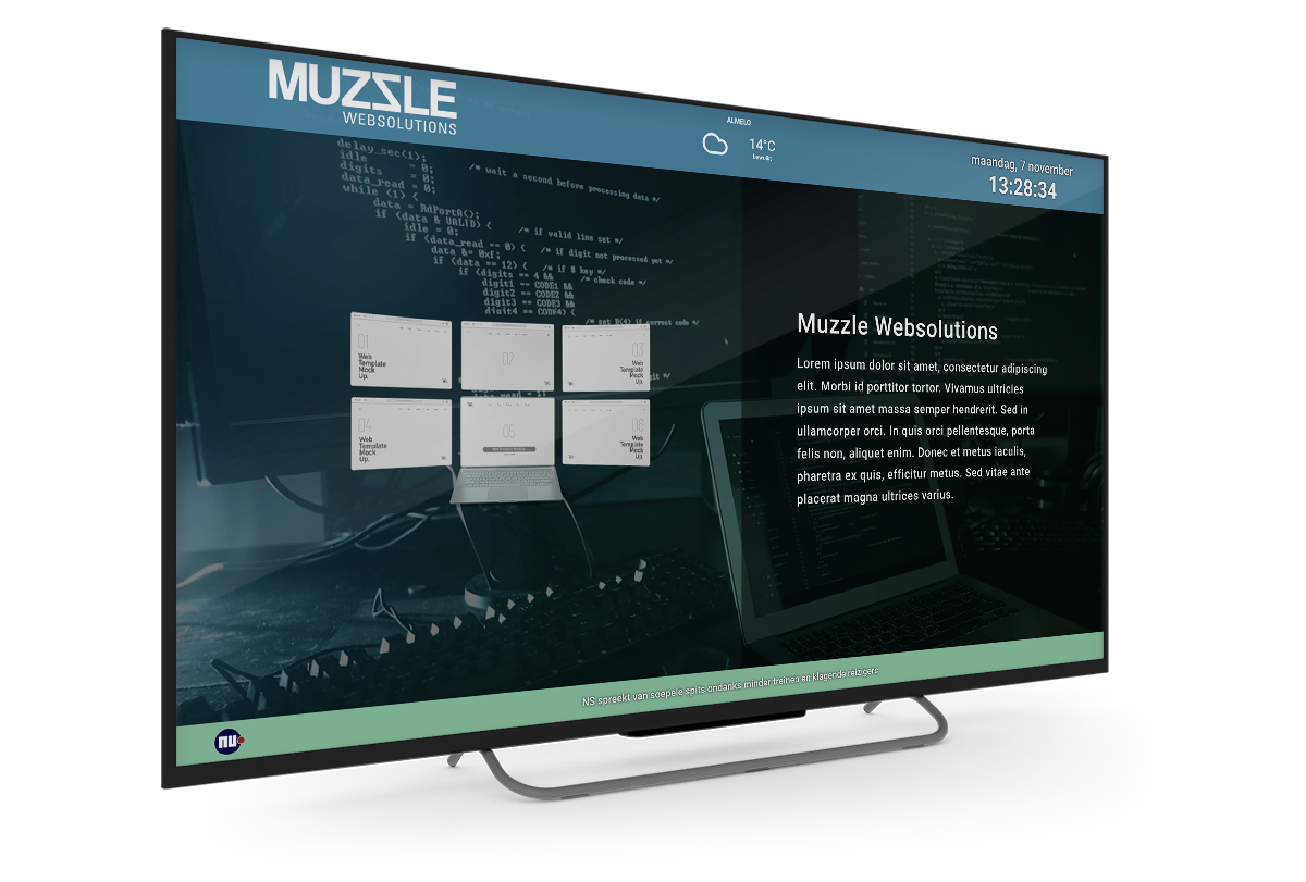 Snel een eenvoudig contect publiceren op een televisie met onze online narrowcasting software. Log eenvoudig in, plaats uw content en de slider en binnen 30 minuten is uw informatie zichtbaar op het scherm. Eenvoudig en snel te beheren vanaf iedere pc ter wereld.